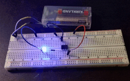 Running a simple blink program on a breadboard with a stand-alone ATtiny85.[/caption]