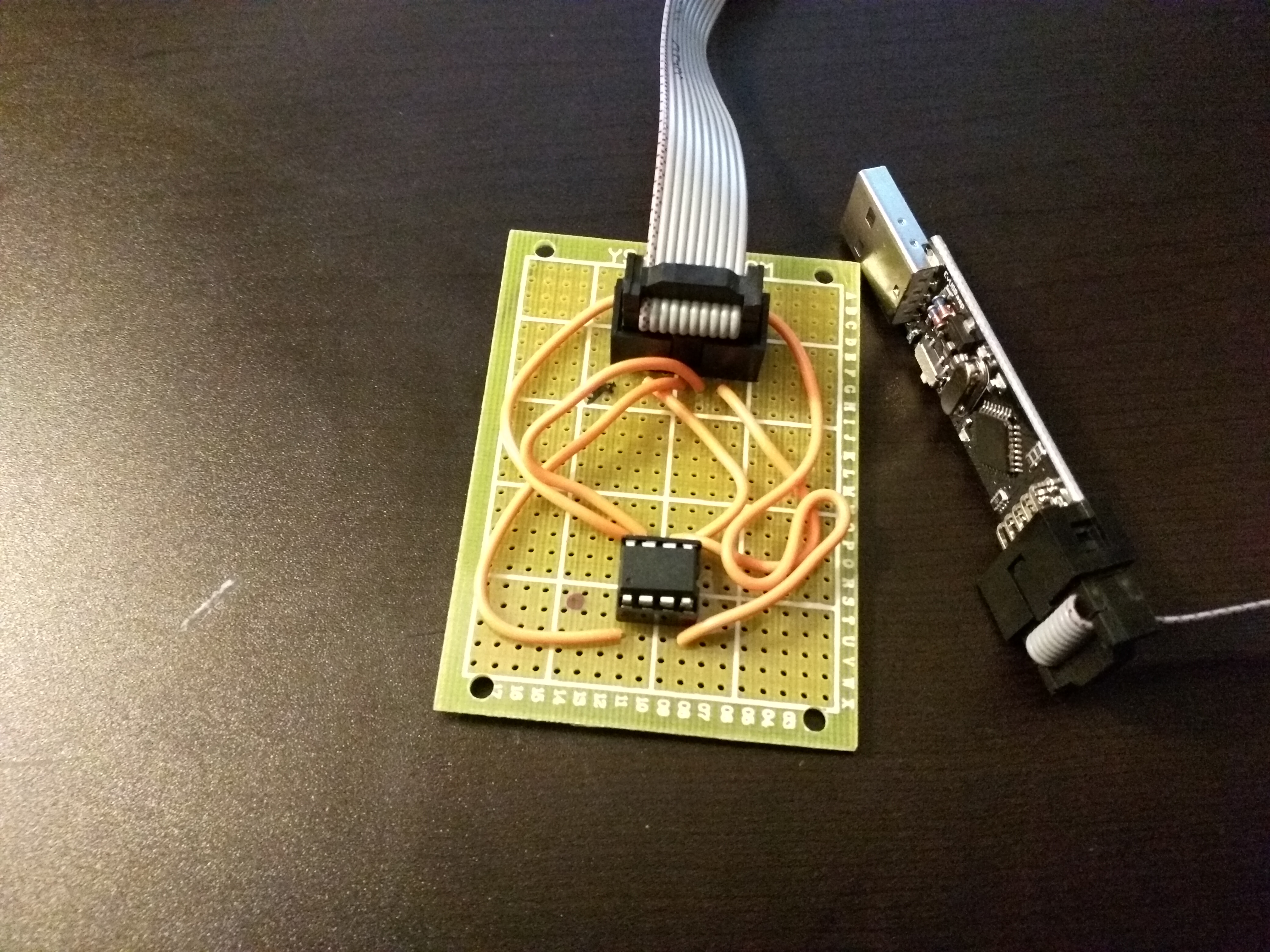 I can quickly program ATtiny chips by putting the chip in the IC socket and plugging an USBasp in the ribbon socket.[/caption]